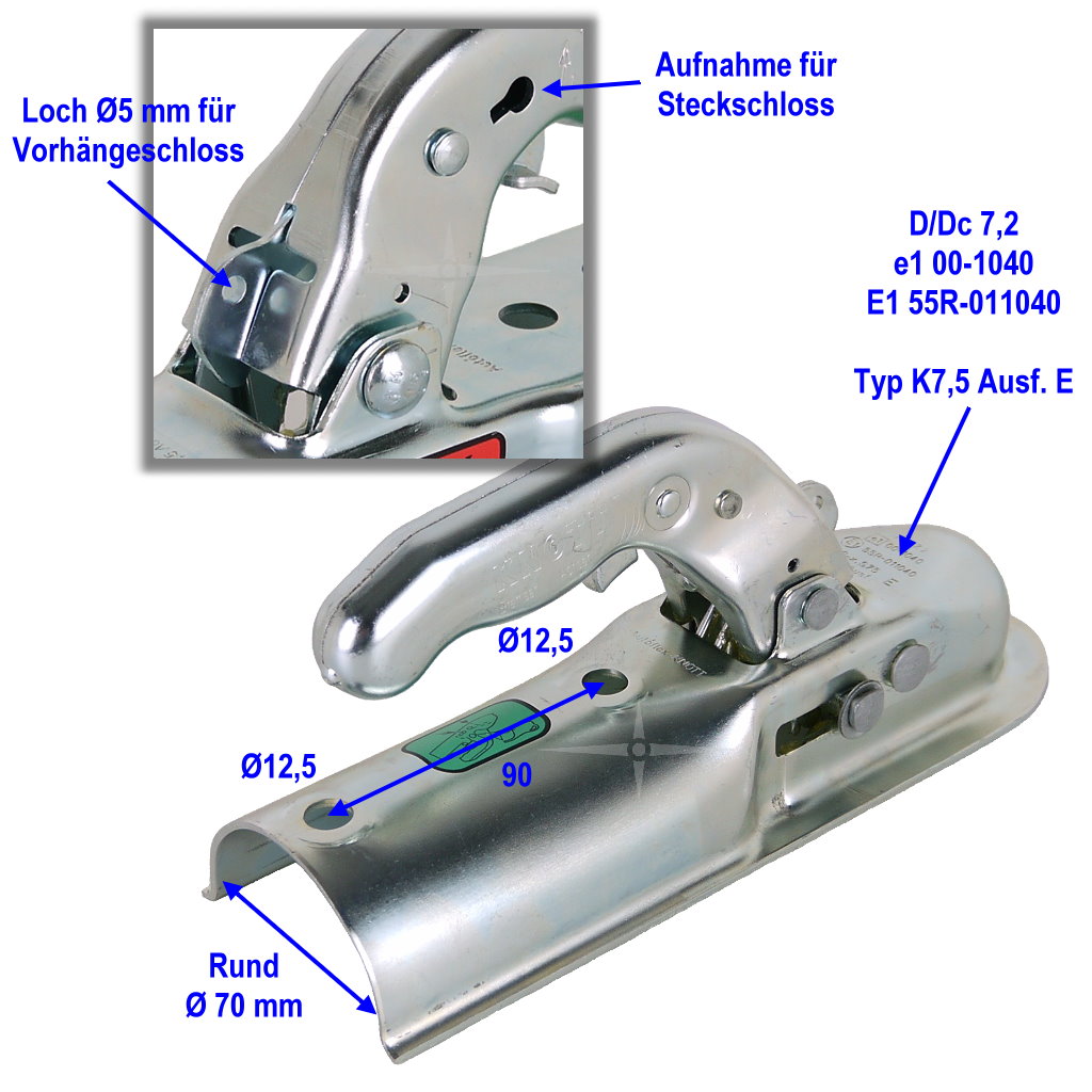 Anhängerkupplung Knott K 7.5 Ausführung E für ungebremste Pkw-Anhänger mit runder Deichsel kaufen Kugelkupplung für runde Rohrdeichsel mit 70 mm Durchmesser Knott 6E0083033 Autoflex kaufen