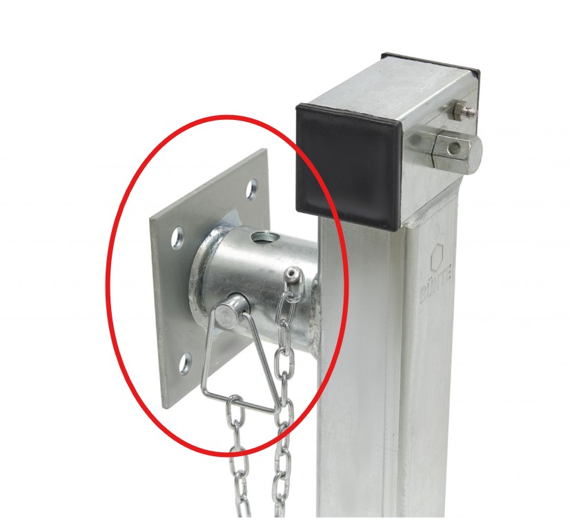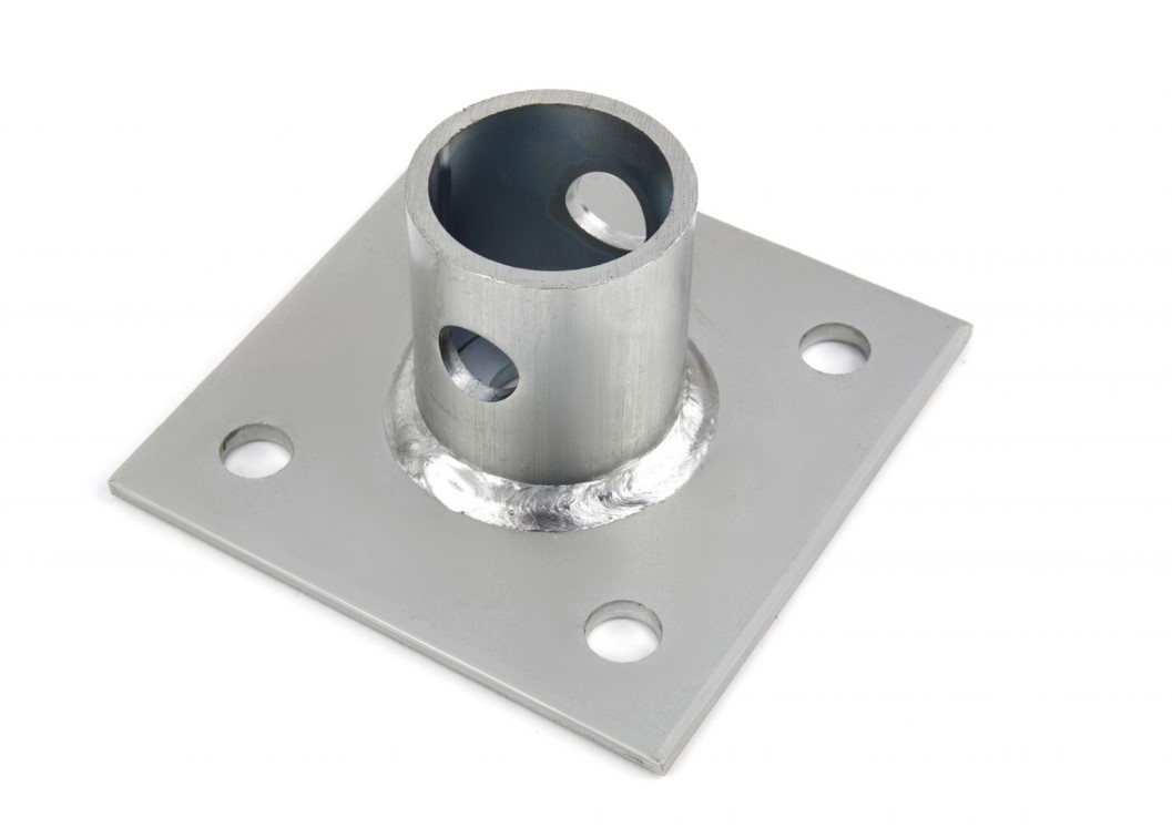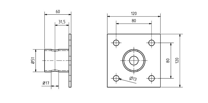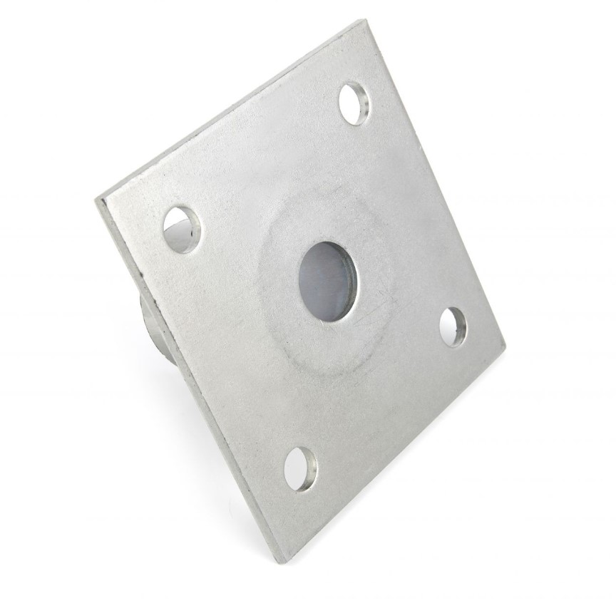 - Grundplatte ca. 120x120 mm mit 4 Bohrungen Ø 12,5 mm (Lochbild 80x80 mm)