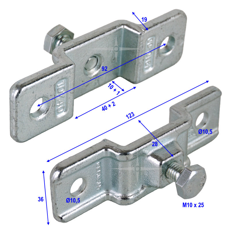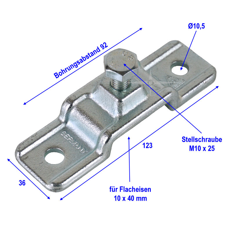 - Aufnahmeöffnung ca. 11x42 mm für Stege aus Flacheisen 10x40 mm