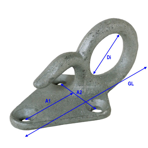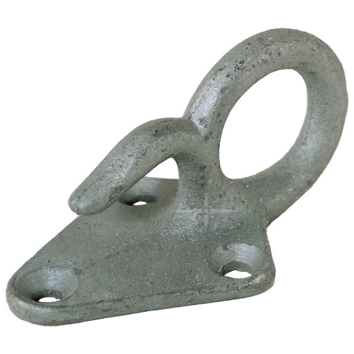 Kombinierter Planenhaken mit Haken + Öse, LxBxH ca. 73x42x37mm, Dreiloch-Befestigung, feuerverzinkt, 04301002
