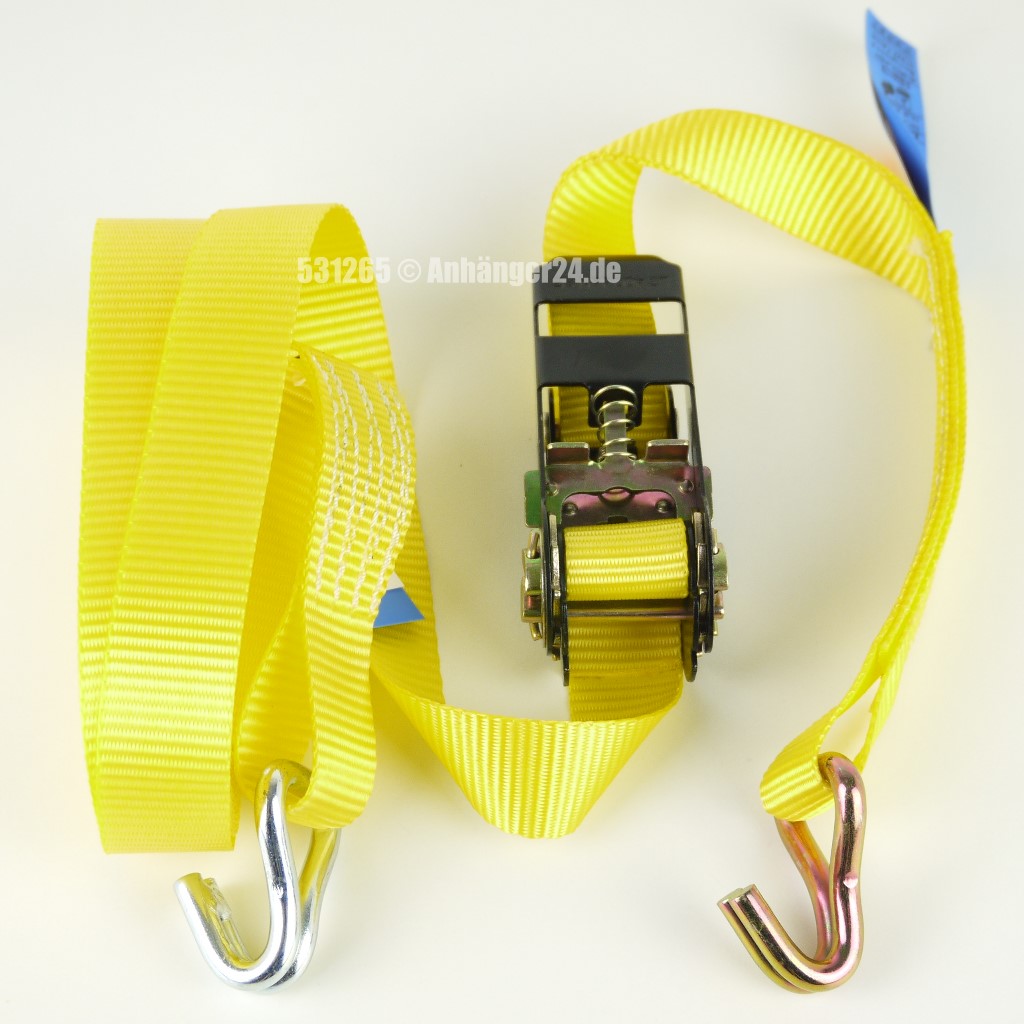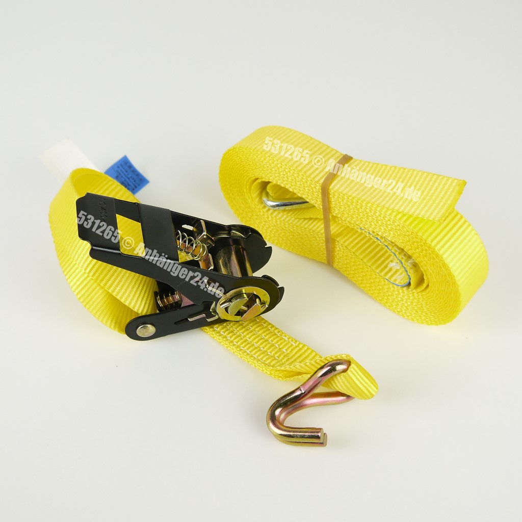 - 1 Stück Zurrgurt (2-teilig bestehend aus: kurzem Ende mit Ratsche und Spitzhaken, sowie langem Ende mit Spitzhaken)