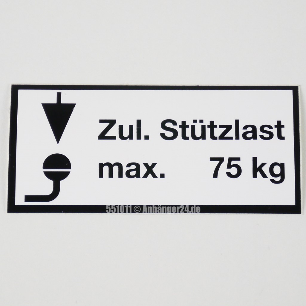 Aufkleber für Anhänger: zul. Stützlast max. 75 kg
