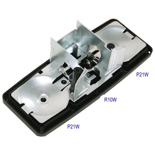 - Leuchtmittel (nicht im Lieferumfang): 2x P21W, 1x R10W