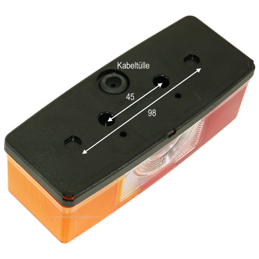 - Rückseite mit Kabeltülle, Befestigungslöcher wahlweise mit Abstand 45 oder 98 mm