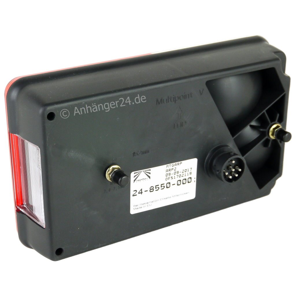 Heckleuchte Aspöck Multipoint 5 mit 8-pol. Bajonettanschluss (8-BA) für Anbau links, Funktionen: BBSNRK, ca. 238x140x55 mm, 248550007, E9 5946