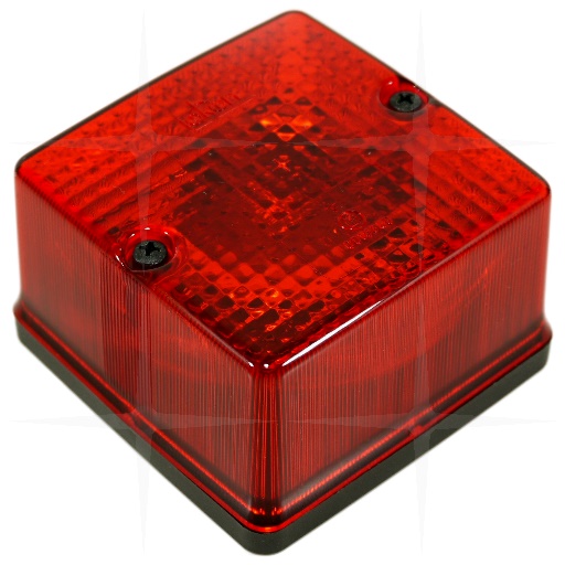 Nebelschlussleuchte Jokon SN 3009 für Pkw-Anhänger. Kompakte quadratische Bauform, Jokon 13.3009.000, Prüfnummer E1 18446, Abmessungen LxBxH ca. 84x84x51 mm.