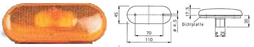 Seitenmarkierungs-Leuchte mit Rückstrahler gelb