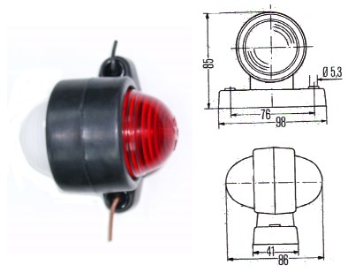 2 Befestigungslöcher, 5,3mm Durchmesser