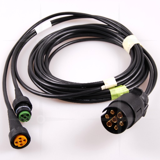 Aspöck Kabelsatz Länge: 5 m | vorn: 7-poliger Stecker | hinten: je links + rechts ein 5-poliger Bajonett-Anschluss (Ausf. Buchse).