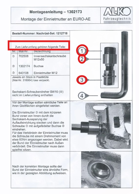 Alko Nachrüstsatz Einnietmutter AE-Euro