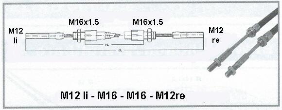 Bremsbowdenzug M12re-M12li / M16 - 490/ 750mm für