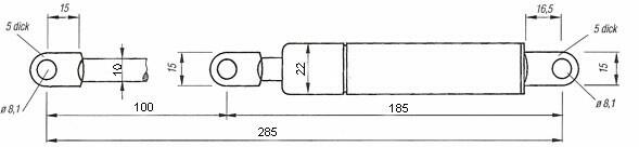 GETO Lift-Gasfeder ST-1 100mm Hub - 285mm Gesamt