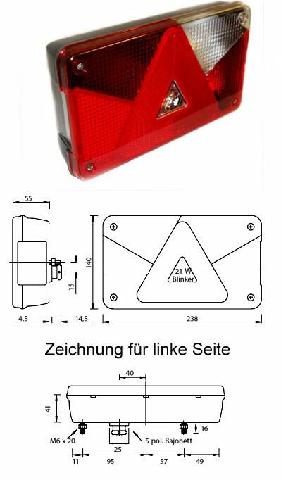 Schluss-, Brems-, Blink- , Rückfahr- und Kennzeichenleuchte seitlich