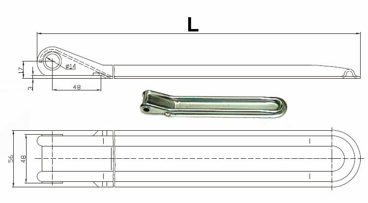 Stellbordscharnier, 56 x 270 mm, Bohrung Ø 12 mm,